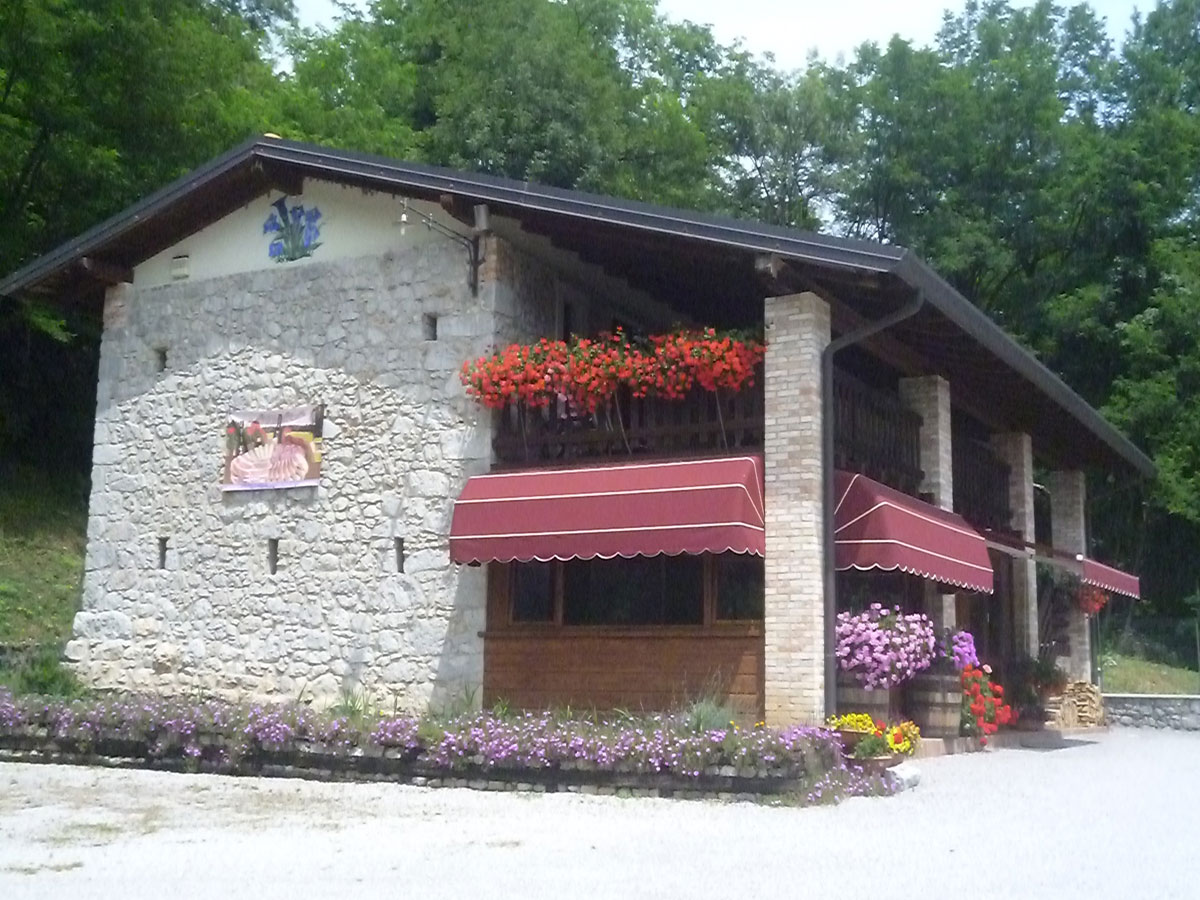 L’edificio è una vecchia malga ristrutturata con interni ed esterni in pietra.