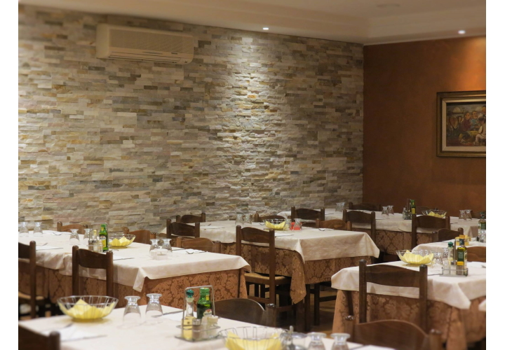 Ristorante a conduzione familiare, con sale riunioni , giardino, tavoli all'aperto. Aria condizionata. Parco giochi per bambini.
