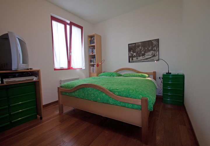 La casa si estende su due piani ed è immersa nel verde. Si compone di due stanze doppie.