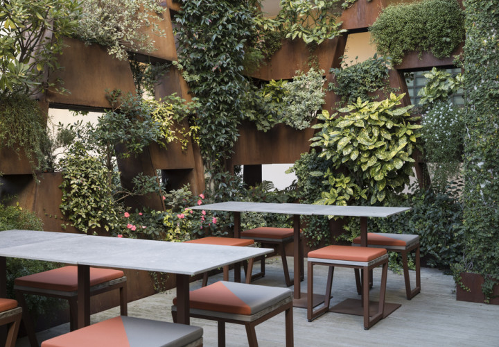 Gli spazi sono raccolti e funzionali, progettati con materiali naturali come ferro, vetro e legno, per creare un ambiente semplice e accogliente.
