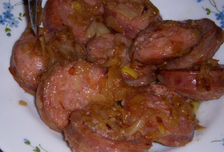 Affettate la cipolla e rosolatela in poco olio. Aggiungete poi il salame tagliato grosso e pelato. Cuocetelo a fuoco vivo per alcuni minuti su entrambi i lati, versate 3 cucchiai di aceto e lasciate cuocere a fuoco basso per circa 10 minuti. Più facile di così!