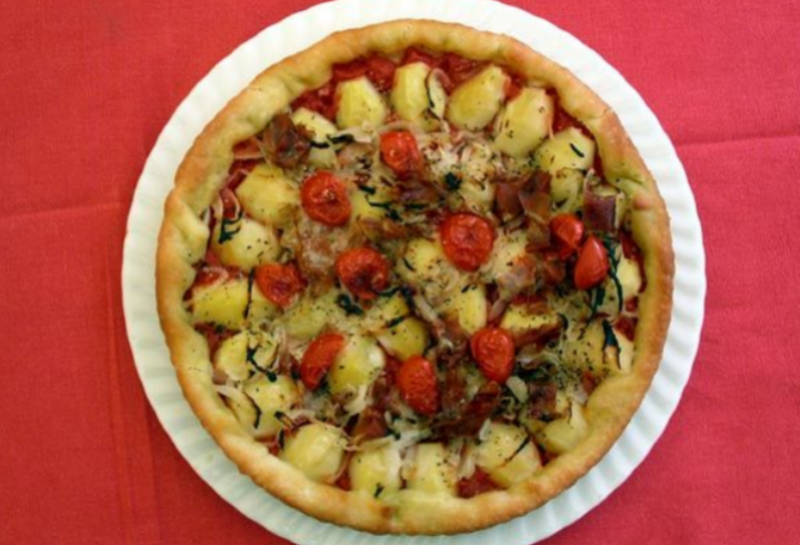 Più che una pizza, una “focaccia nostrana” che esalta il gusto della patata, sposandola a pancetta, pomodorini e cipolla. Per questa ricetta, è preferibile usare la patata varietà “Kennebec” a pasta...