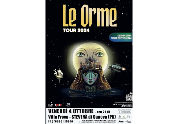 Il concerto de Le Orme, si terrà a Villa Frova (Stevenà di Caneva), venerdì 4 ottobre alle ore 21:15.