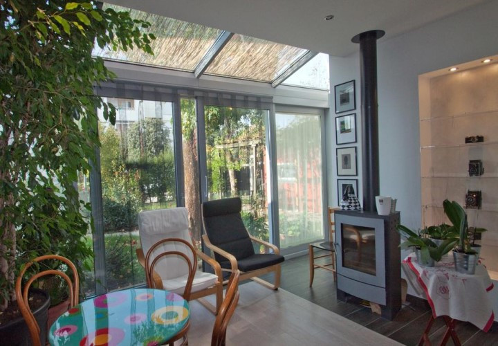La colazione viene preparata nella serra che costituisce anche il soggiorno.