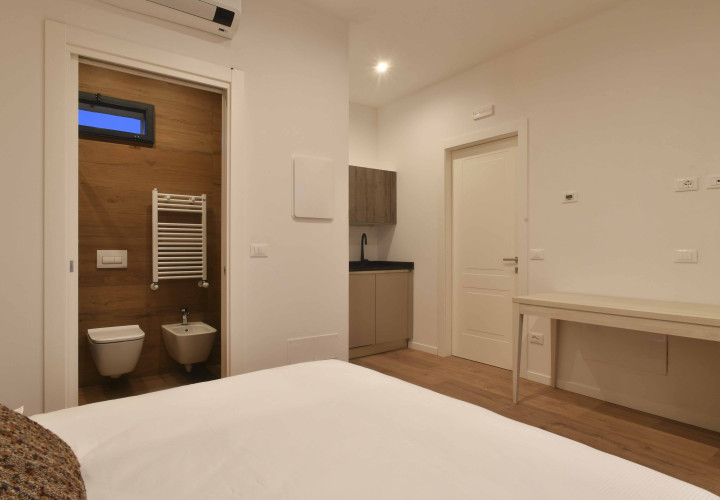 LE CAMERECasa Titti offre appartamenti in affitto, combinando privacy e condivisione. Oltre alle camere dotate di angoli cottura, gli ospiti possono usufruire di spazi comuni come la sala da pranzo con tavolo da dieci posti, una cucina completamente atrezzata, la sala divani/TV e una lavanderia attrezzata. Ogni camera è arredata con toni e caratteristiche differenti ma dotate di angoli cottura, Smart TV, aria condizionata, bagno privato e asciugacapelli.